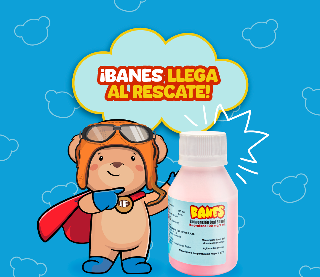 Banes proporciona un alivio efectivo para dolor y fiebre en niños de 2 a 12 años - Ibuprofeno 100mg/5mL con sabor tutti frutti.